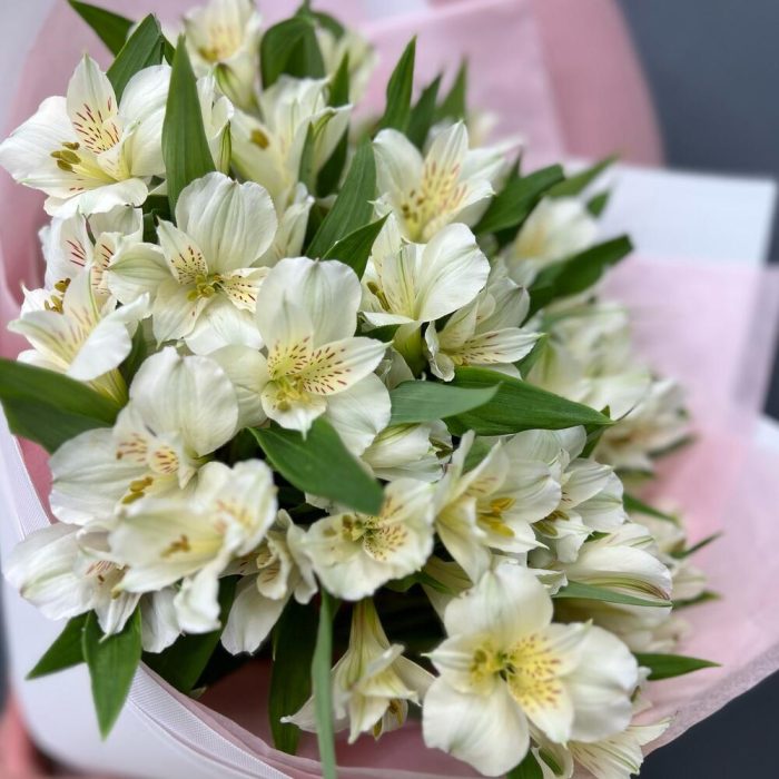 Альстромерия – 15 шт.Тишью – 1 шт.структурированны фаомиран – 1 шт.Лента – 1 шт.