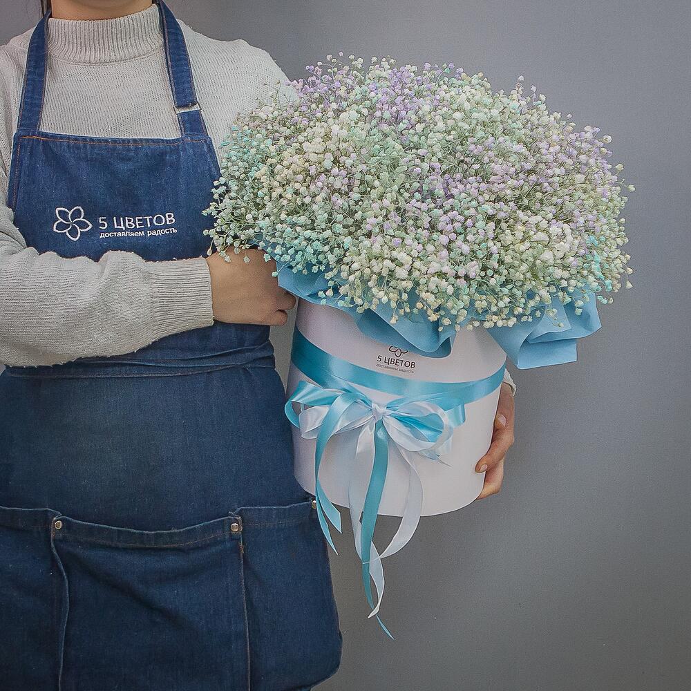 Гипсофила – 15 шт.Коробка шляпная – 1 шт.