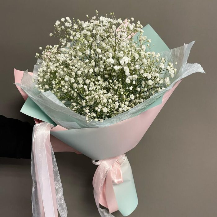Гипсофила – 5 шт.Лента – 5 шт.Упаковка дизайнерская – 2 шт.Шар сердце – 1 шт.