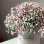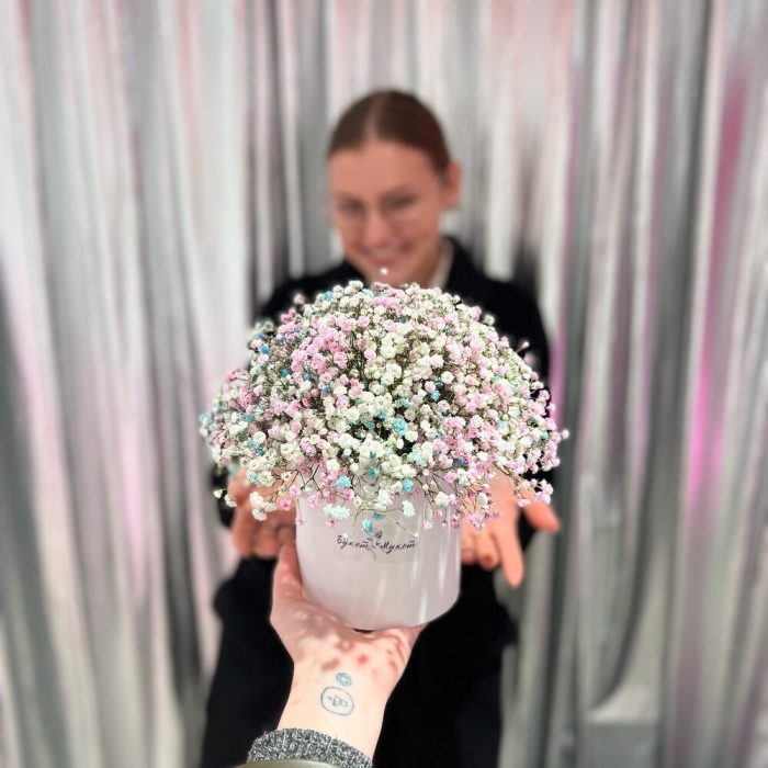 Коробка шляпная – 1 шт.Оазис флористический – 1 шт.гипсофила радужная – 4 шт.