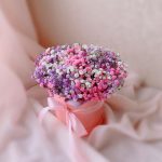“Сиреневый туман” – композиция из гипсофилы в шляпной коробке