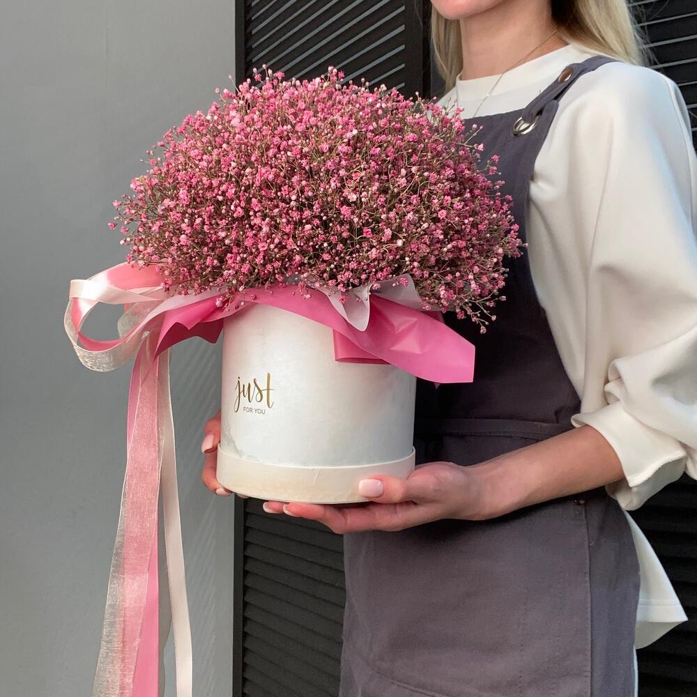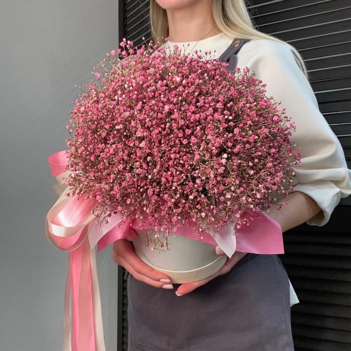 Розовая гипсофила в коробке