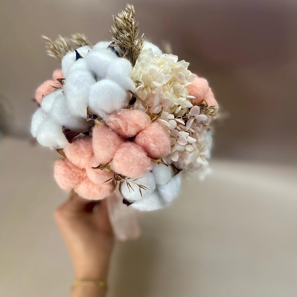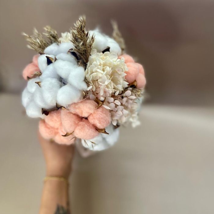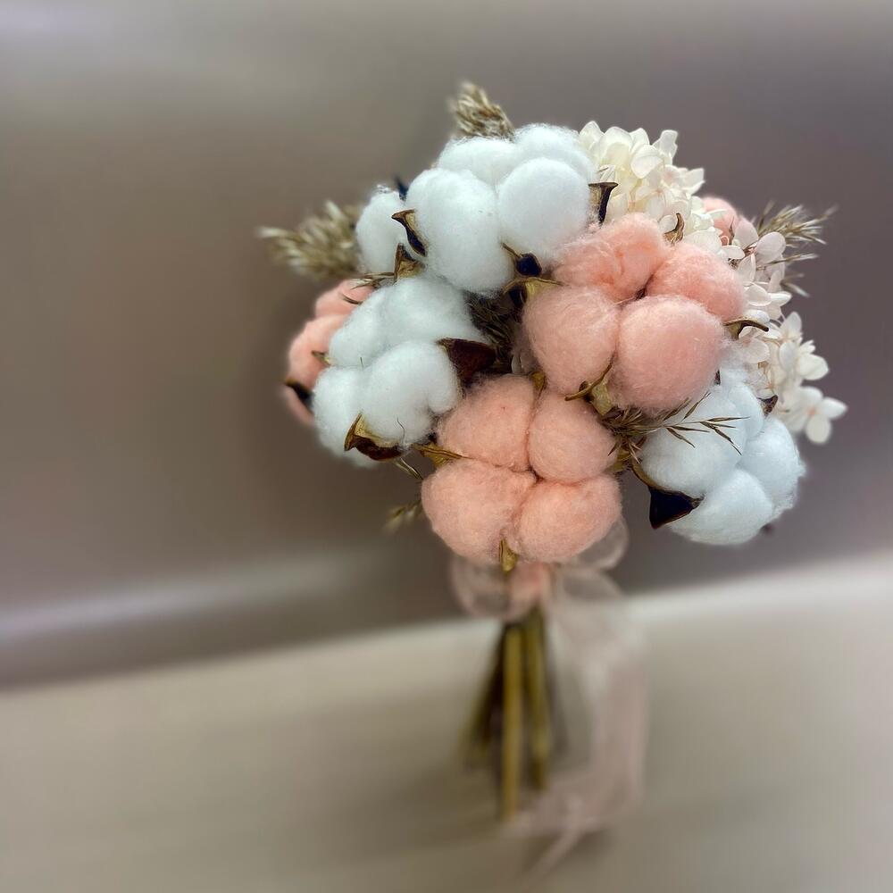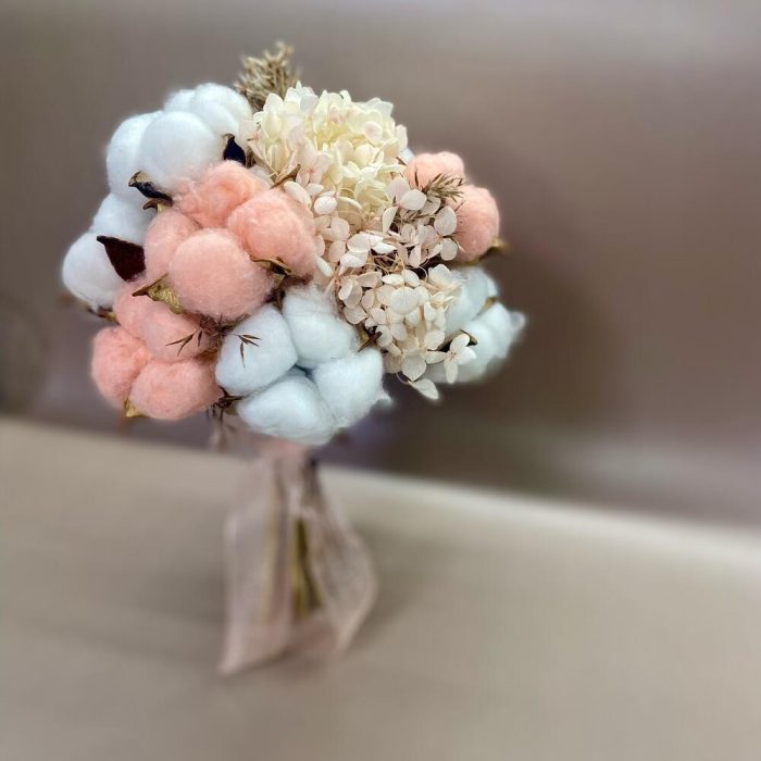 Хлопок – 12 шт.гортензия стабилизированная – 1 шт.Лента – 1 шт.
