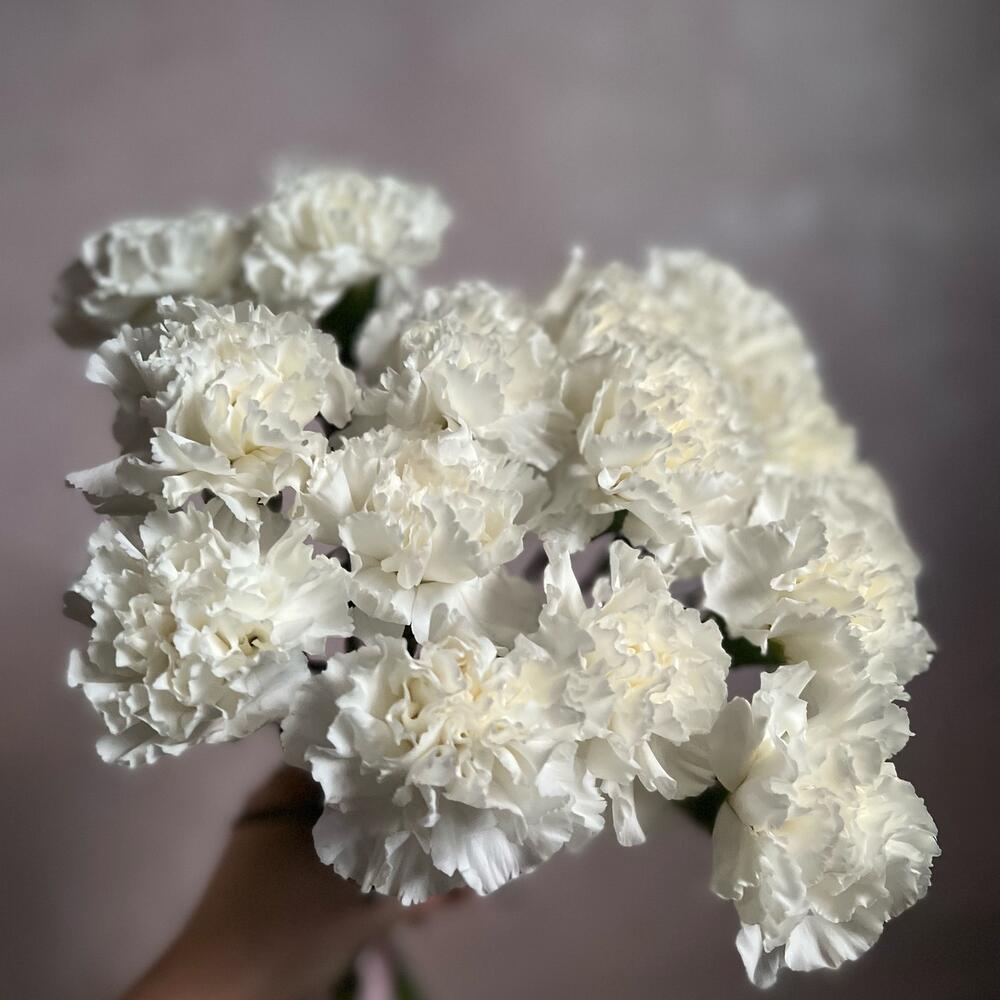 белые диантусы – 15 шт.Атласная лента – 1 шт.