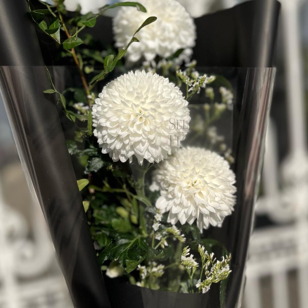 хризантема боул – 3 шт.Фисташка – 2 шт.озатомнус – 2 шт.Дизайнерская упаковка – 1 шт.
