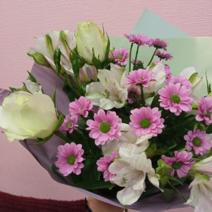 Букет с розой, альстромерией и хризантемой