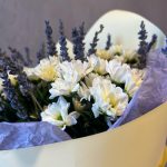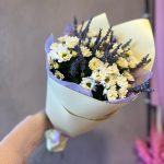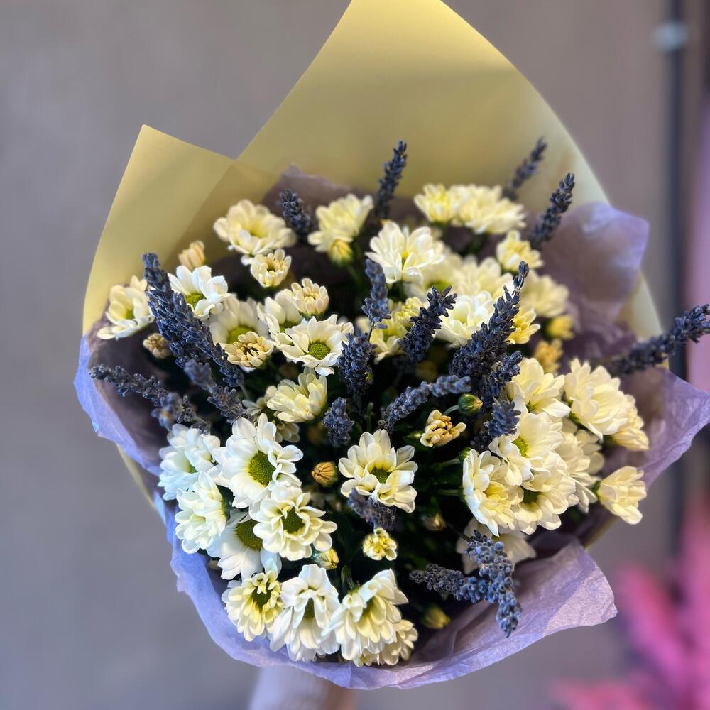 «Лавандовое созвездие» Букет из розы, гвоздики, статица и хлопка