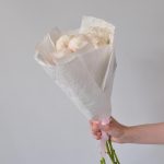 Лента атласная – 1 шт.Крафт – 2 шт.Пион белый – 5 шт.