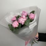 Эвкалипт – 3 шт.Пион Сара Бернар – 5 шт.Дизайнерская упаковка – 1 шт.