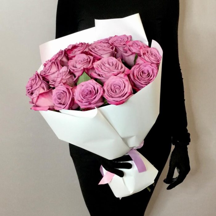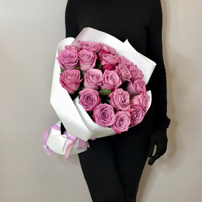 Лента атласная – 1 шт.Пленка матовая – 1 шт.роза модис блю – 19 шт.