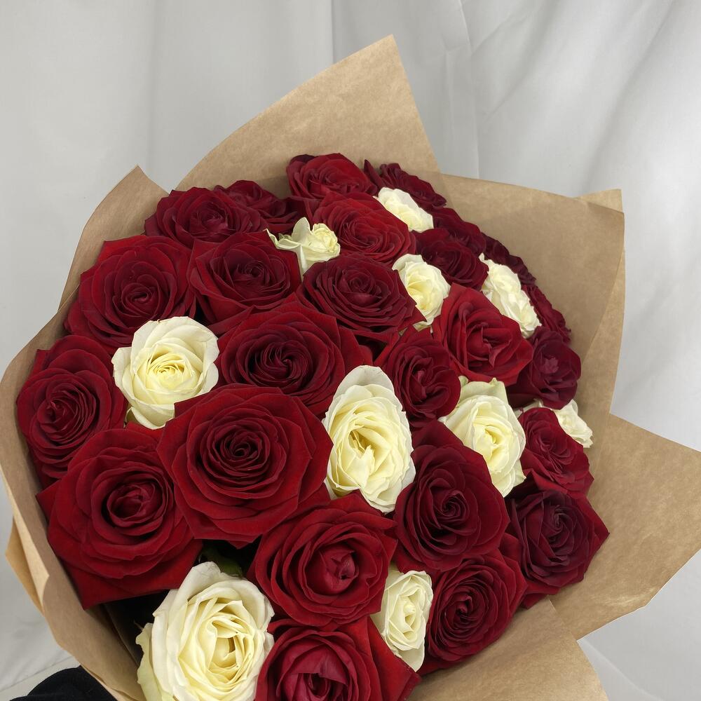 Букет из 35 красных и белых роз