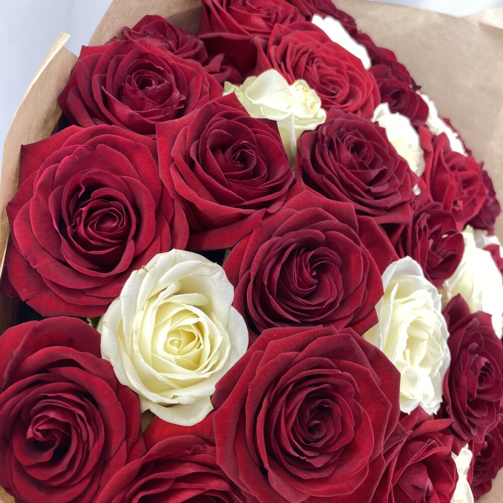 Красная роза – 25 шт.белая роза – 10 шт.