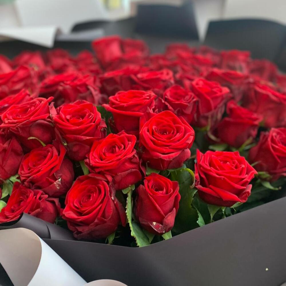 Букет из 61 красной розы 40 см (Кения)