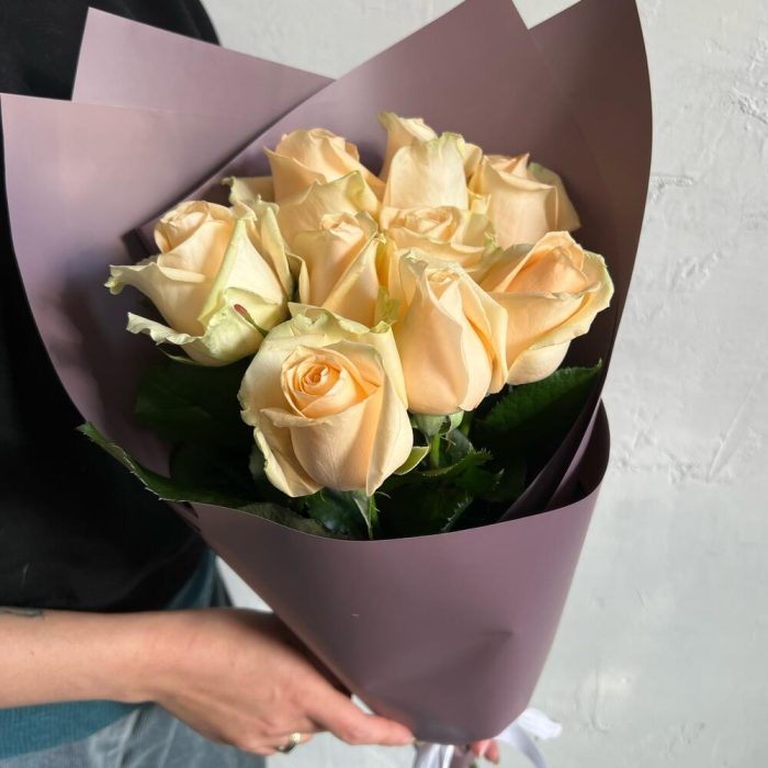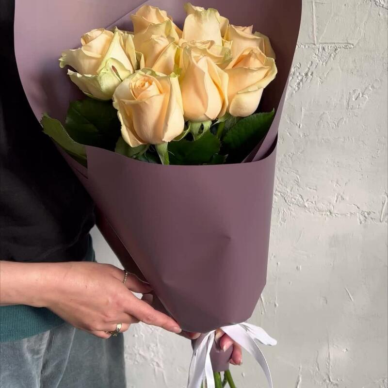 Роза одноголовая – 9 шт.Упаковка дизайнерская – 2 шт.Лента атласная – 2 шт.