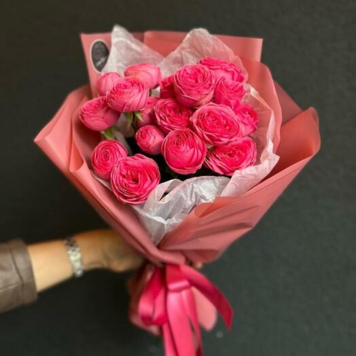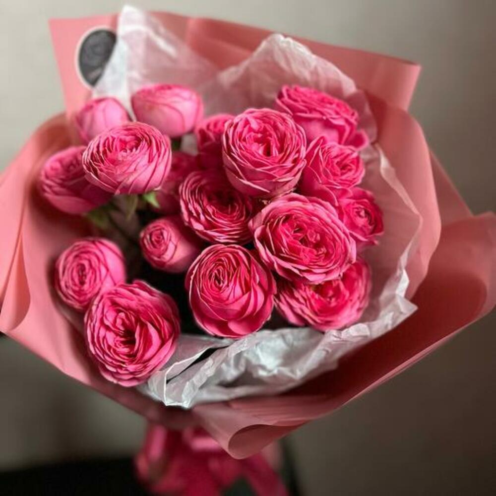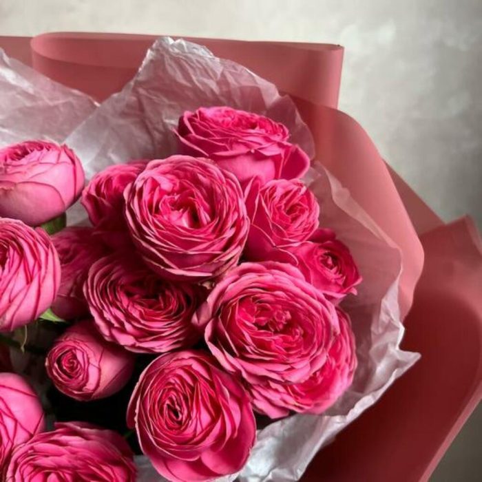 Букет из кустовой пионовидной розы “Малиновый фрэш”