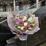 Букет из маттиолы, хризантемы и лизиантус