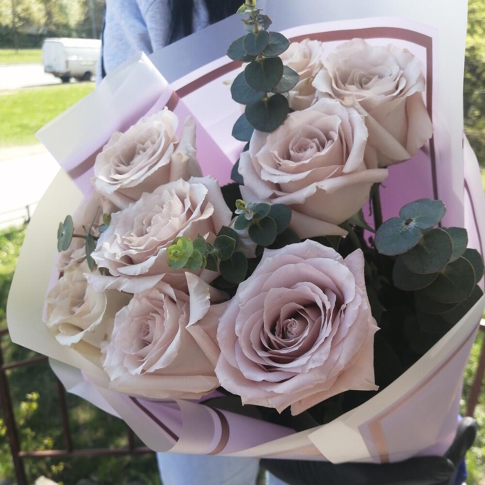 Букет из роз с эвкалиптом