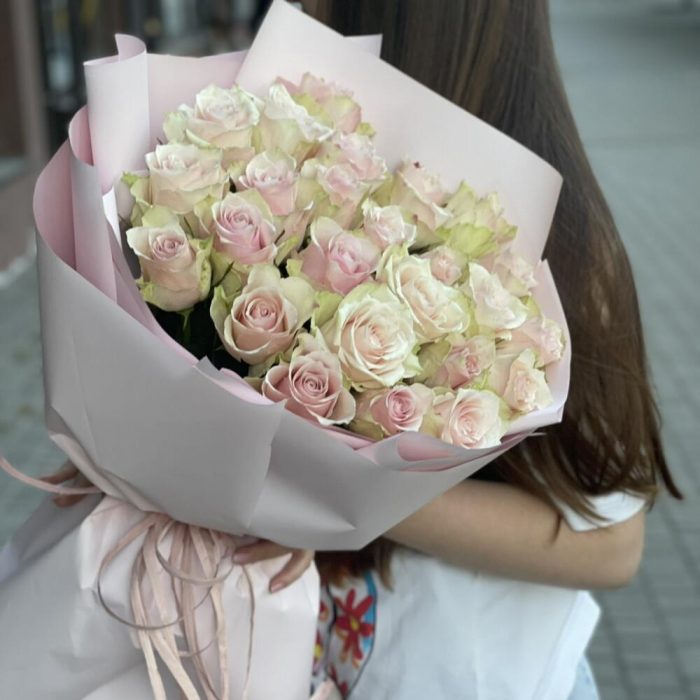 Метки: 25 роз, На свадьбу, от 5000 руб, Роза 60 см, Розовые розы