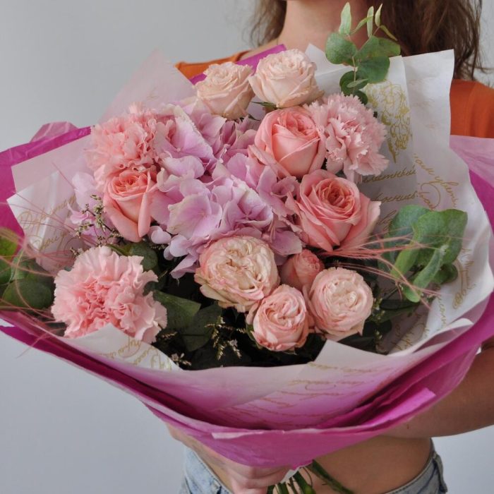 Категорий: Гвоздики, Гортензии, Кустовые розы, Пионовидные розы, Розы