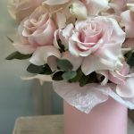 Голубая гортензия и пудровые розы