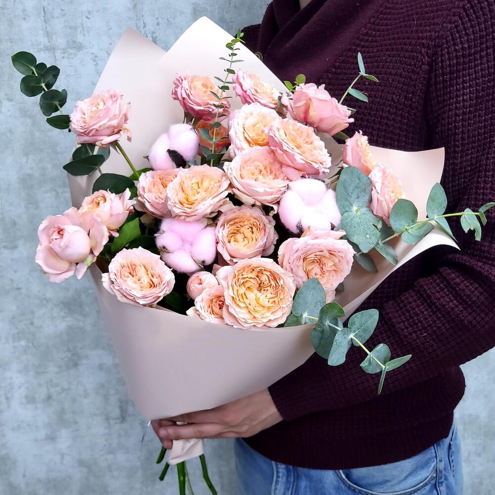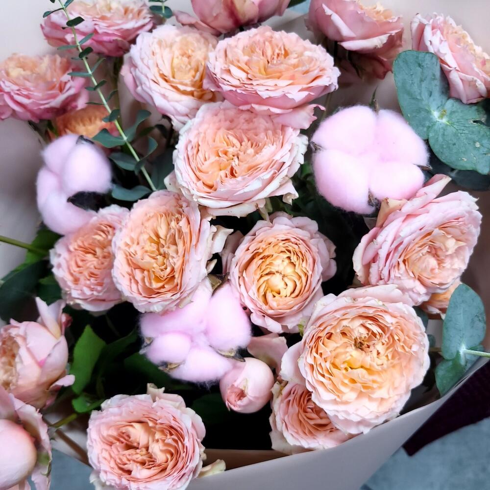 Кустовые розы, Лизиантусы, Розы, Сухоцвет