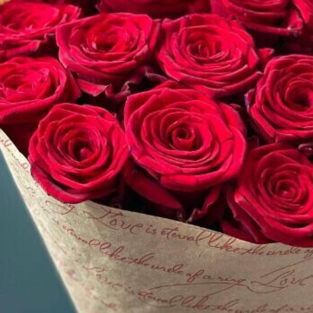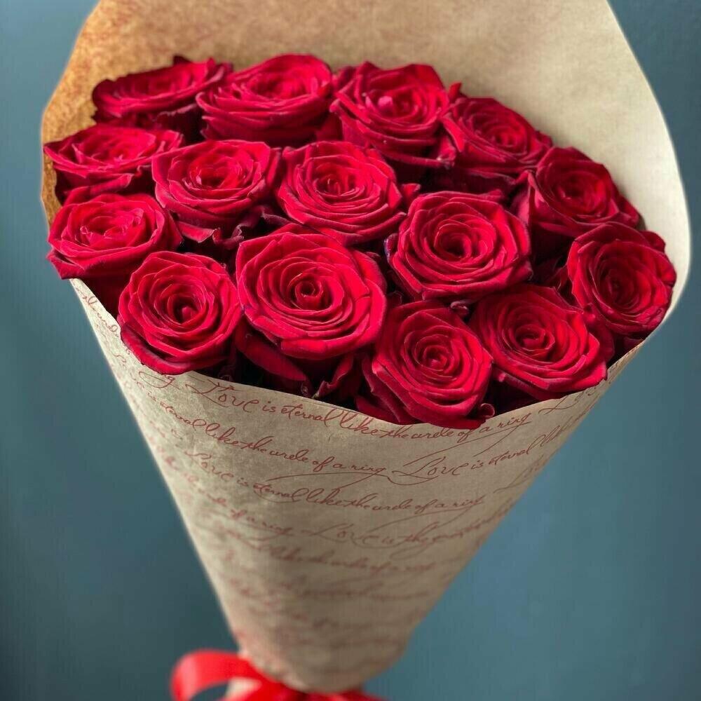 Лента – 1 шт.Крафт упаковка – 2 шт.розы эквадор (60 см) – 15 шт.