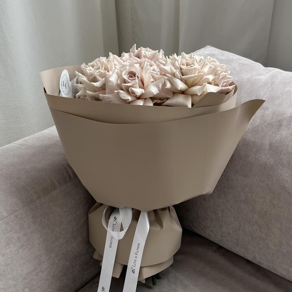 Роза menta – 9 шт.тишью хрустящая – 1 шт.пленка матовая пудровая – 1 шт.