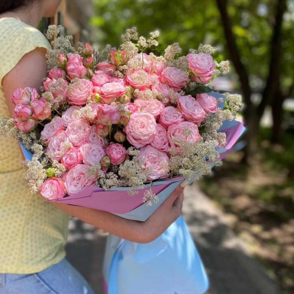 Гвоздики, Кустовые розы, Пионовидные розы, Розы